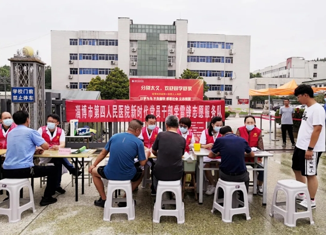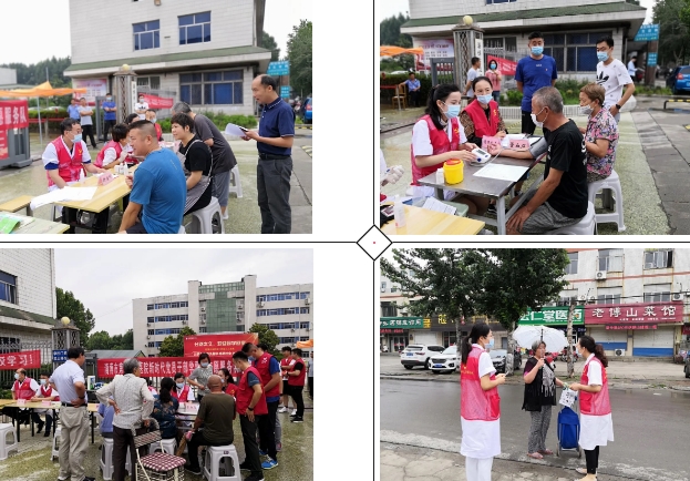 “初心如磐,使命在肩”!为积极践行党员干部新时代“初心”和“使命”,丰富“双报到”活动内容,切实把医疗护理专家送到群众的家门口,让医院周边居民享受到更高诊疗技术水平的健康服务,6月30日上午,淄博市第四人民医院党总支副书记、院长毛立亭和他所在的临床一支部党员志愿者联合淄博市技师学院交通工程系党支部走进朝阳社区,参加社区志愿服务大集活动,开展肿瘤早诊早治、心血管疾病预防、夏秋季传染病防治、心肺复苏急救技术普及培训等健康知识宣讲及义诊活动。