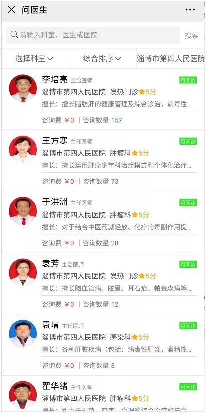 各科室医生都可以在平台找到。