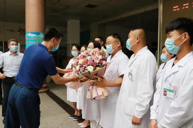 冯炳涛代表经开区管委会向辛勤奋战在临床一线的医师们送上鲜花和慰问品,并致以节日的祝贺和诚挚的慰问。