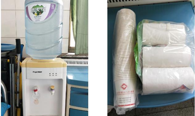 急诊患者大多都具有杂、难、急、危重的特点,在突发情况下,患者和家属会出现口渴的现象,正值炎热季节,水是必不可少的,饮水机距离急救室还有一段距离,或多或少造成了不便。为此,急诊科经过申请和协调在急救室内安置一台饮水机,配好了一次性纸杯、卫生纸,并为活动受限、不能翻身的病人准备了吸管,方便饮水。