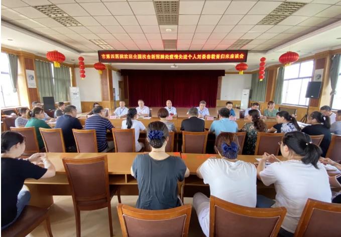 2020年9月9日上午,淄博市第四人民医院召开欢迎全国抗击新冠肺炎疫情先进个人刘景春载誉归来座谈会。