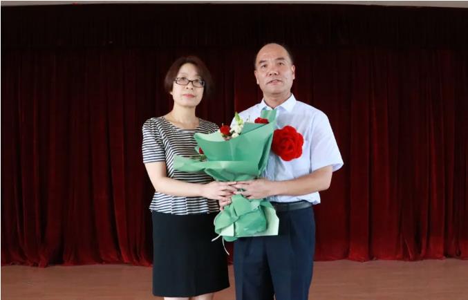 会上,感染四科主任高庆娥为刘景春同志献花。