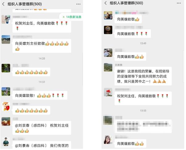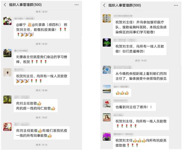 全院干部职工纷纷为刘景春主任点赞,向全体一线抗疫医护人员致敬,表示将以他们为榜样,牢记医者初心,践行神圣使命,以人民至上、生命至上的炽热情怀,召之能战、战之能胜的昂扬状态,孜孜以求、精益求精的专业精神为全市人民的身体健康保驾护航。