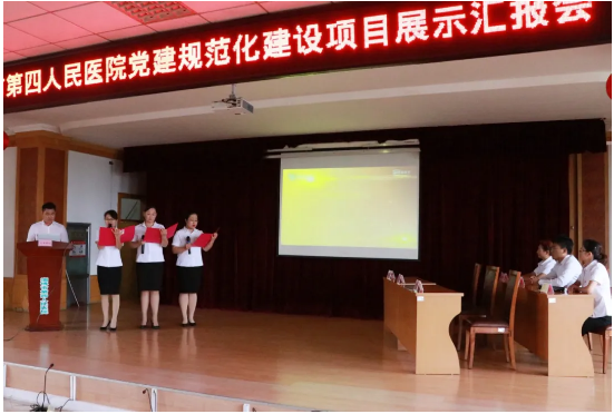 10月13日下午,淄博市第四人民医院组织举办党建规范化建设项目演练展示汇报会。市卫生健康委机关党委副主任科员、团委副书记刘璐观看汇报会,医院党总支成员、各支部党员参加汇报会。
