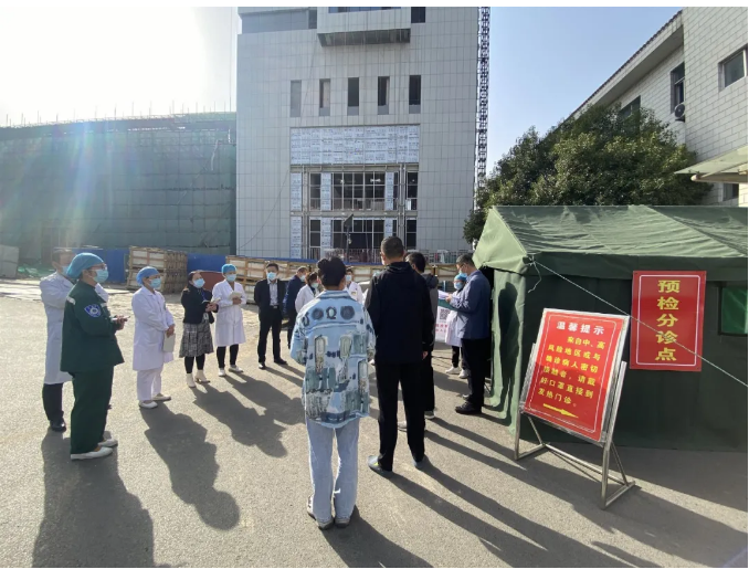 为了进一步强化“外防输入,内防扩散”,提高医院常态化疫情防控能力,提升医务人员新冠肺炎疫情防范意识和应急处置水平,10月22日下午,淄博市第四人民医院模拟出现第一例新冠确诊患者应如何应对,组织开展应急演练,应急办、医务科、护理部、门诊部、院感科、公共卫生科、总务科、保卫科、安全生产管理科、宣传科及相关科室医护人员全程参加此次演练。