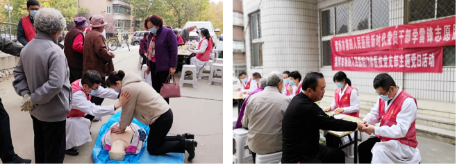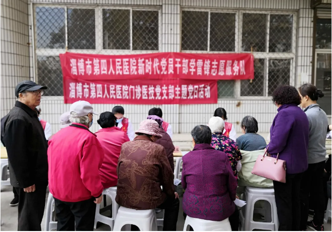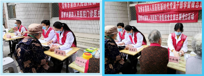“初心不改,砥砺前行!”为进一步增强党员责任意识及服务意识,充分发挥每一位党员的先锋模范作用,切实把优质医疗护理服务送到群众家门口,10月28日,淄博市第四人民医院门诊医技支部党员志愿者组成的医护专家团,联合张店区南定镇朝阳社区居委会党总支,走进张店区南定镇电西村生活区,对社区居民进行义诊咨询、疫情防控健康知识宣传、心肺复苏急救技术普及培训等健康义诊志愿服务活动。