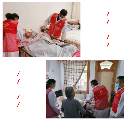 由骨科、心理科、放射科及检验科等科室党员志愿者组成的专家团一行5人手提诊疗物品,在朝阳社区居委会网格员的带领下,先后走进因罹患脑卒中89岁卧床25年、87岁卧床10年的两位老人家中,为其测血糖、量血压,并结合老人症状体征,给予正确服用药物、合理饮食指导及心理疏导等,为老人及家属送温暖、送健康。