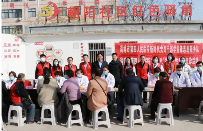 为弘扬雷锋精神,引领健康风尚,进一步增强党员责任意识、服务意识,充分发挥党员的先锋模范作用,切实把优质服务送到群众家门口,在第58个“学雷锋纪念日”到来之际,由机关一支部、临床四支部党员志愿者组成的淄博市第四人民医院医护专家团,联合张店区南定镇朝阳社区居委会党支部,于3月5日上午在张店区南定镇朝阳社区红色驿角开展“学雷锋”“双报到”义诊咨询、健康知识普及、入户健康指导等志愿服务活动,这也是医院庆“三八”关爱女性健康系列活动之一。