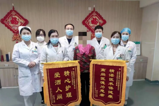 一上班,神采奕奕的罗阿姨向肿瘤六科护士站走来,把两面锦旗交到了王方寒主任、罗静护士长手中。