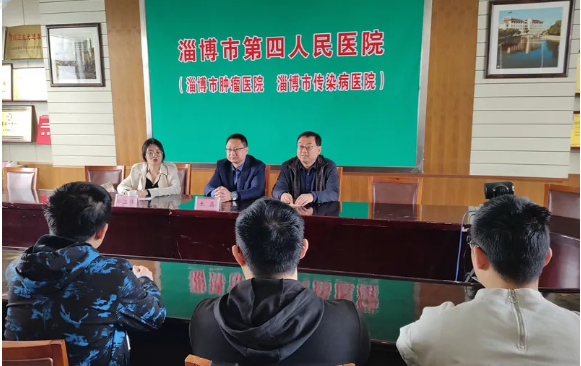 4月9日上午,山东中医药大学针灸推拿学院学生处郭立伟老师到淄博市第四人民医院进行座谈交流。副院长王磊代表院方接待来访,科教科及2016级针灸推拿专业实习学生参加座谈。