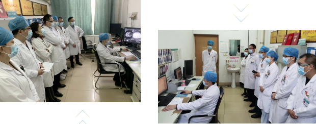 首先,由当班医生就昨日急诊及疑难病例进行读片。主任宓兵、副主任李祥峰对报告依次点评,指出诊断要点及注意事项。