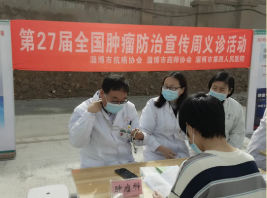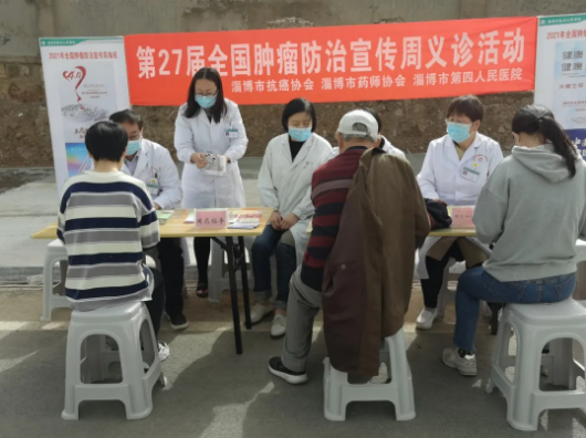 在第27届全国肿瘤防治宣传周暨“中国抗癌日”来临之际,近日,淄博市抗癌协会联合淄博市药师协会开展义诊及抗癌、用药安全知识宣传活动。今年的主题是“健康中国健康家——关爱生命,科学防癌”,来自淄博市第四人员医院的专家为群众义诊并进行防癌、抗癌知识讲解,传播健康知识。