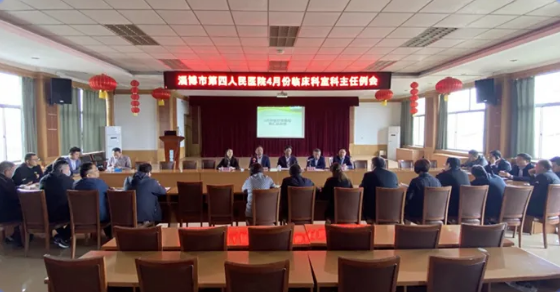 淄博市第四人民医院4月份临床科室科主任例会于近日召开。会议由副院长黄其来主持,党委书记郭平、纪委书记鲍应麟、副院长王磊、党委委员傅伟伟、医务科副科长孙振杰及各临床科室主任参加了会议。