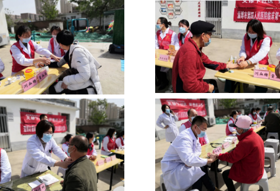 肿瘤科、介入科、中医科等科室的医护专家为社区群众发放体检表,进行健康检查、量血压、测血糖,耐心解答群众的咨询、问诊。