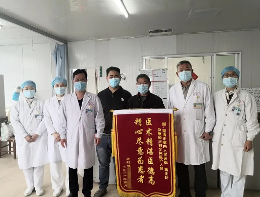 有一种情谊是在工作中形成,有一种感谢是发自内心的颂扬。近日,家住罗村镇的何大爷及其家属将一面写有“医术精湛医德高,精心尽意为患者”的锦旗,送到了感染三科医护人员的手中,感谢医护人员这段时间以来对他无微不至的照顾。