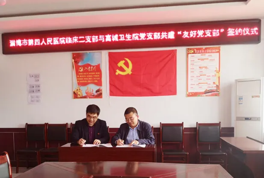 2021年5月13日,淄博市第四人民医院临床二支部与高青县高城中心卫生院党支部共建“友好党支部”签约仪式在高城中心卫生院举行。