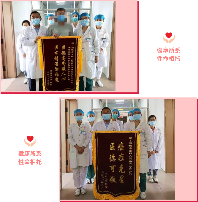 近日,淄博市第四人民医院中西医结合感染科一天收到了两面锦旗,一面写着“医德高尚暖人心,医术精湛除病魔”,另一面写着“癌症克星,医德可敬”,这面锦旗还是患者在烟台工作的子女专门赶回来赠送的。