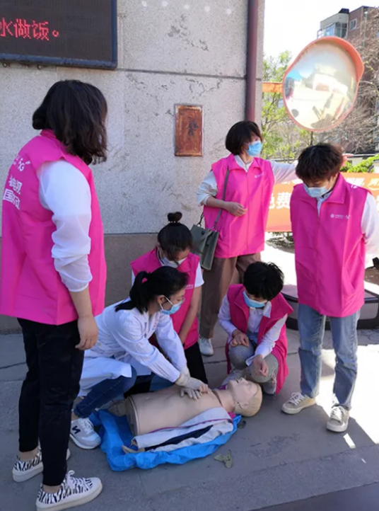 对淄博移动经济开发区分公司员工进行心肺复苏急救技术普及和技能操作培训。