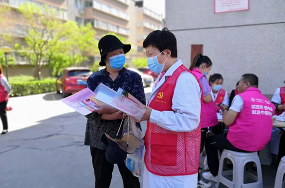 为推进党史学习教育走深走实,增强党员责任意识和服务意识,充分发挥支部战斗堡垒作用,切实把优质医疗服务送到群众家门口,5月28日上午,淄博市第四人民医院党委副书记、院长路慎国带领临床第二党支部、机关第一、第二党支部党员,深入朝阳社区教育小区开展“学党史 践初心”“我为群众办实事•走千村进万户”志愿服务“双报到”活动。