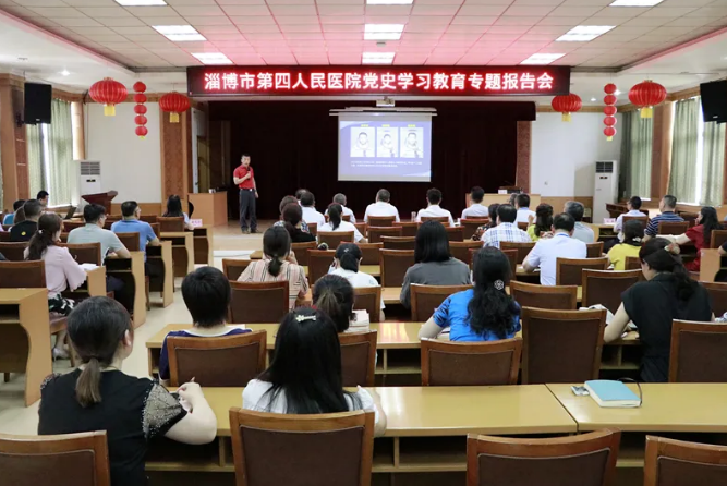 为切实贯彻落实习近平总书记在党史学习教育动员大会上的重要讲话精神,引导干部群众树立正确党史观,做到学史明理、学史增信、学史崇德、学史力行,6月22日下午,淄博市第四人民医院举办党史学习教育专题报告会,邀请淄博市委讲师团原副团长、副教授于涛同志授课,医院党委书记郭平同志主持,120余名党员干部参加了报告会。