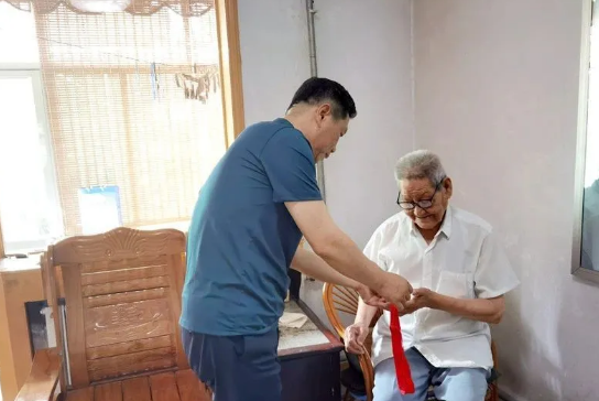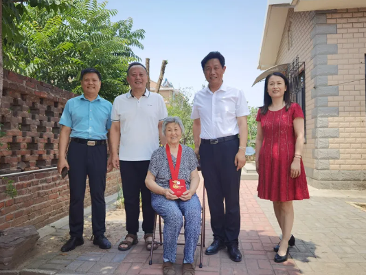 当来到离休干部杨爱英家时,看到老人身体健康、精神矍铄大家都十分高兴。郭平同志亲自给她佩戴上“光荣在党50年”纪念章,并送上慰问金和慰问品。他说,颁发“光荣在党50年”纪念章,充分体现了以习近平同志为核心的党中央对老党员的关怀和褒扬,对老党员忠诚党的事业、践行党的宗旨、兢兢业业为民服务的敬重和肯定,今天,我们特意来为您送上这份荣誉,衷心感谢您们为党的事业和医院建设发展作出的积极贡献。