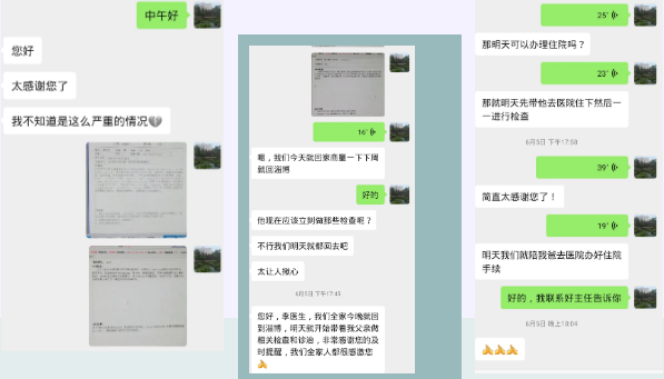 日子过得飞快,转眼到了2021年6月的一天,中午下班后,护士长向云找到副主任李祥峰,称有一位老年患者刚刚做完膝关节磁共振,因家较远,希望能尽快出具报告,他便利用休息时间为该患者书写报告,当看到患者名字时,李祥峰马上警觉起来,他立刻翻看了该患者的既往影像资料,发现他就是3年前诊断为早期肺癌的患者,随即将他请进报告室,详细询问了三年来的诊疗状况。得知患者2018年5月收到医院出具的检查报告并未放在心上,没有进行进一步检查,只是在北京买了一种号称可以“治疗”癌症的富硒药物——实为保健品,不具备任何治疗作用。李祥峰凭借其多年肺结节的诊断经验判断其肺部病变是肺癌,依照患者口述三年未就医经历判断其肺部结节绝不可能好转。于是耐心讲解其病情严重性,患者同意再做一次检查。对比两次CT图像,发现其肺部病灶较三年前增长近一倍,实性部分明显增大,已由肺癌早期进展至近中期。听李祥峰说完,患者只称“回家后会加大药量,将原来‘药物’的药量加大至两到三倍,相信疾病一定会好。”听闻此言,李祥峰哭笑不得,见无法说服该患者,又考虑到任由疾病继续发展必会夺去患者的生命。左思右想后,本着一位医生治病救人的初心,他绝不能坐视不管。几经周折,他查找到患者的单位信息,联系其所在单位组织人事科及退休管理部门,找到患者女儿的联系方式,把一系列情况与他女儿说明,并再三叮嘱如不立即进行治疗,患者很可能会失去治疗的机会。出于对医院能够明确诊断其父亲病情的信任,并决定让其父亲在医院进行后续治疗。