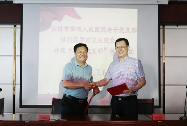 为认真学习贯彻习近平新时代中国特色社会主义思想,深入贯彻落实习近平总书记“七一”重要讲话精神,结合党史学习教育“我为群众办实事”工作要求,切实把市级医疗资源下沉,让基层百姓享受到更好的医疗健康服务。2021年7月6日下午,淄博市第四人民医院老干一支部、老干二支部与淄川区罗村镇卫生院党支部正式签约友好共建协议,以党建引领业务融合发展。