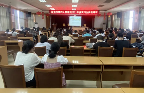 为保证学生实习工作顺利开展,7月7日上午,淄博市第四人民医院召开2021年实习生岗前培训会。副院长王磊、科教科科长柳善刚、副科长刘萍参加开幕式。来自山东省中医药大学、聊城职业学院、莱芜职业学院、山东煤炭卫生学校及曲阜中医药学校的临床、护理、检验专业共计65名实习生参加培训。
