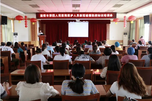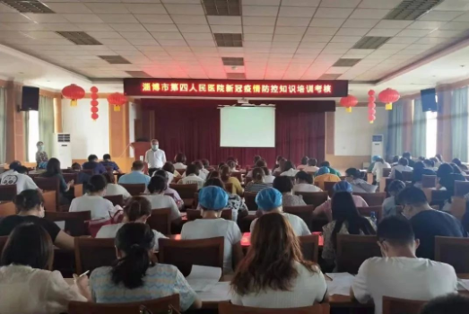 为进一步做好新冠肺炎疫情防控工作,全面落实防控措施,提高医护人员疫情防控能力,近日,淄博市第四人民医院组织召开新冠肺炎疫情防控知识培训会,全院临床医护人员参加培训及考核,这也是淄博市第四人民医院庆祝第四个“中国医师节”系列活动之一,培训会由副院长黄其来主持。