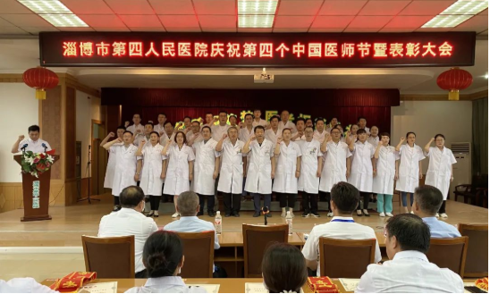 会议由院长路慎国主持。他指出,回望中国共产党百年征程,一代代医者前赴后继、砥砺前行,赓续红色血脉,践行初心使命。第四医院的广大医师始终秉承“敬佑生命、救死扶伤、甘于奉献、大爱无疆”的医师精神,以“诚信、感恩、务实、担当、敬业、奉献”的核心价值观全心全意为病人服务,全院老中青几代人为医院建设发展奉献了青春和光热。目前医院正处在跨越式发展的关键时期,医院为广大医师搭建了施展才华的广阔舞台,希望大家以身边榜样为标杆,爱岗敬业、履职尽责、勇于担当,敢于创新,当好人民健康的守护者、精湛医术的引领者、健康淄博的实践者、大爱无疆的奉献者、医学精粹的传承者,努力塑造新时代医师的良好形象,为全面完成医院各项工作任务再立新功,为保障全市人民群众的生命安全和身体健康再做贡献!