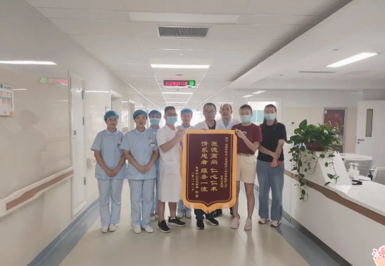 这一面锦旗,是患者及家属对介入科工作的认可,是鼓励,更是鞭策。介入科副主任朱亮和王克山经常说, “推己及人”“换位思考”是介入科的服务理念,只要把每一个患者都当成自己的亲朋好友,或者亲朋好友的家人,就能切实提高服务质量,创造属于我们自己的服务品牌,从而最终得到患者和家属的认可。