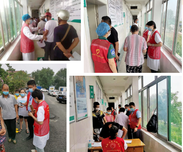 来自临床、医技、机关七个党支部的志愿者们协助查验健康码、分发号牌、维持秩序、叮嘱群众接种疫苗后注意事项、解答群众各类问题,疫苗接种点留下了志愿者们忙碌的身影。