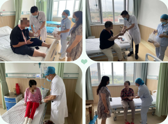 中秋是阖家团圆的美好日子,对于住院患者来说,由于治疗需要,很多患者无法回家与家人团圆,医护人员为科室每一位患者递上中秋月饼,送去节日的问候,详细询问患者的身体状况以及住院治疗效果,一时间病房里伴随着一声声“中秋快乐、早日康复”的真挚祝福,浓浓的中秋气氛也让患者们感受到亲人就在身边,关爱就在咫尺。