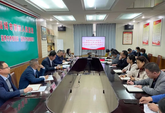 11月18日下午,淄博市第四人民医院党委理论学习中心组集中组织学习贯彻党的十九届六中全会精神,深入开展研讨交流。医院党委书记郭平同志主持,党政领导班子成员、行政职能科室负责人参加学习。