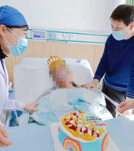 “感谢各位主任、护士长,还有咱科里全体医护人员,我爸爸现在身体能感到舒服都是靠咱科里人员的精心医治和悉心照料,对我们来说也是给老父亲过了一个特别的生日,让我们终身难忘,谢谢大家了。”韩大爷的儿子既激动又开心地说着。
