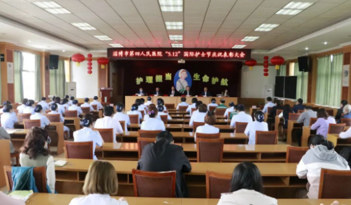 5月11日下午,淄博市第四人民医院举行5·12国际护士节庆祝表彰大会,医院领导班子成员、各科室主任、护士长及护理人员代表等100余人参加。会议严格按照疫情防控要求,佩戴口罩,保持间距。
