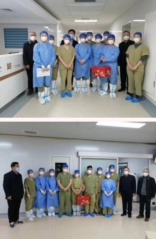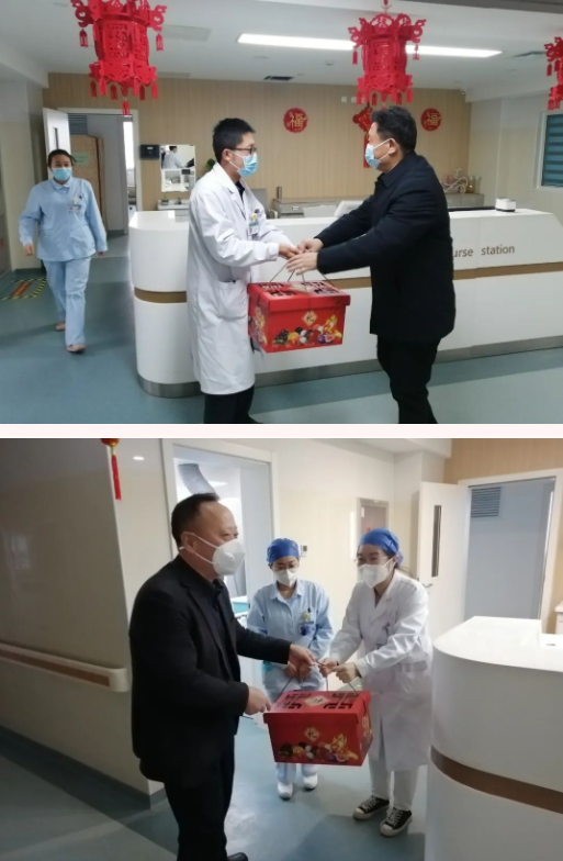 “过年好!给大家拜年!你们辛苦了!”,“祝您早日康复!”声声祝福,殷殷嘱托,每到一处,院领导都与坚守在工作岗位上的职工、患者及家属亲切交流,贴心的为其送上春节慰问品,并仔细询问科室春节期间的工作情况,感谢大家在阖家团圆的日子,舍小家为大家,坚守在工作岗位上。同时勉励大家要牢记责任和使命,继续坚守岗位,保证春节期间的临床诊疗和服务质量,全力做好患者救治工作,切实保障人民群众健康,确保群众度过一个安定祥和的新春佳节。