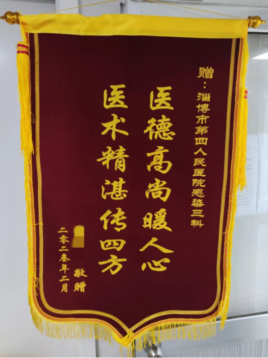 近日,从淄博市传染病医院感染三科病愈出院的吕先生将一面印有“医术精湛传四方,医德高尚暖人心”的锦旗送到了副主任吕明手中,以表达他对吕明及全科医务人员高度的责任感和使命感的敬佩之心;对他精心的救治、无微不至照顾的感激之情。