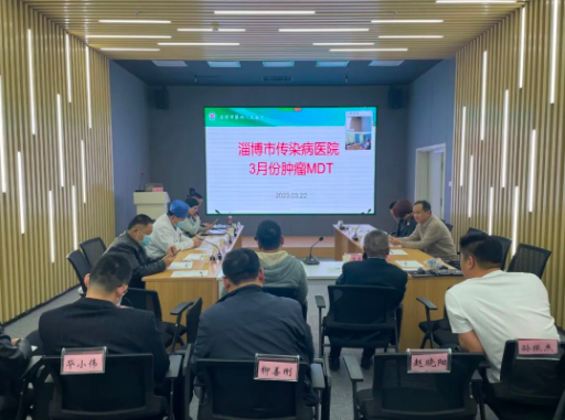 3月22日下午,淄博市第四人民医院3月份肿瘤MDT在医院远程会诊中心举行。活动由副院长黄其来、轮值主任李强共同主持,肿瘤内科、肿瘤外科、介入科、感染科、放射科、病理科、放疗科等临床医技科室主任及青年骨干医师共计40余人现场参加,另有90余人线上参与。