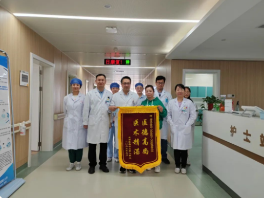 近日,患者张奶奶的家属将一面通红的锦旗送到淄博市第四人民医院介入科主任朱亮和副主任孙德喜的手中,表达感激之情。特别感谢孙德喜及全体医务人员,用精湛的技术让患者得到有效治疗,用细心关怀让患者倍感温暖。锦旗上“医德高尚,医术精湛”八个金色大字熠熠生辉,映衬着患者家人脸上的灿烂笑容,画面让人无比温暖和欣慰。