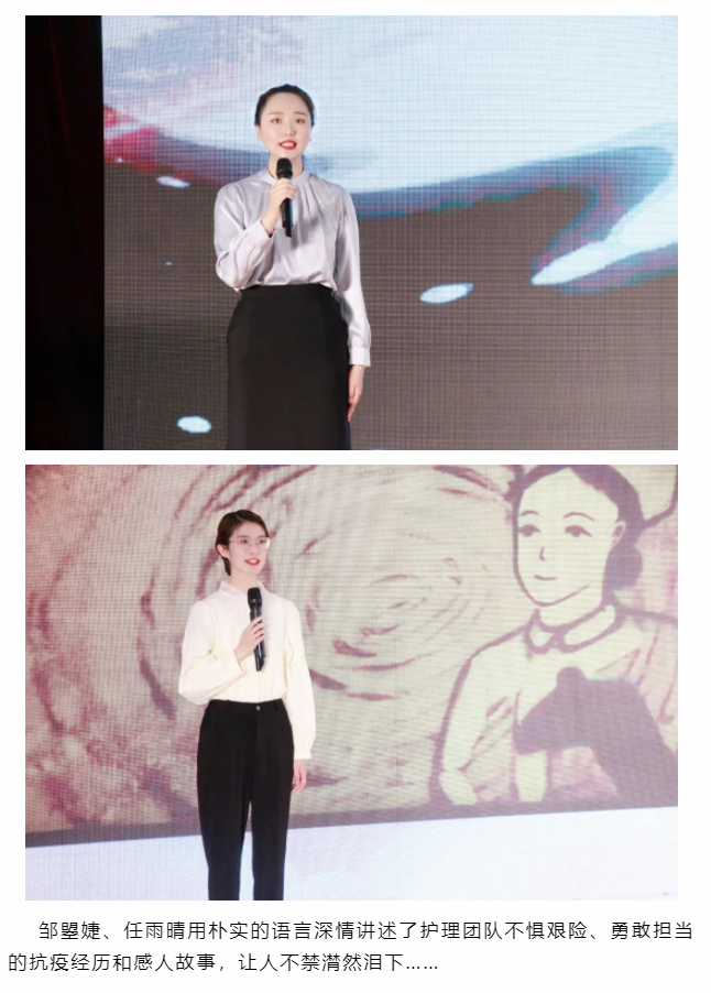 会上,宣读了上级表彰文件、医院《关于表彰最美护士的通知》《关于表彰三十年护龄工作者的通知》《关于公布首届护理健康教育微视频比赛获奖科室的通知》《关于公布“学标准、强规范”护理授课比赛获奖人员的通知》《关于公布“讲护理故事、展天使风采”演讲比赛获奖人员的通知》。