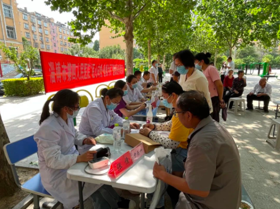 5月16日,淄博市第四人民医院机关二党支部、临床四党支部的党员志愿者、医疗专家团队走进淄川经济开发区艳阳花苑社区开展现场义诊活动,让社区群众在家门口享受市级优质的医疗服务。