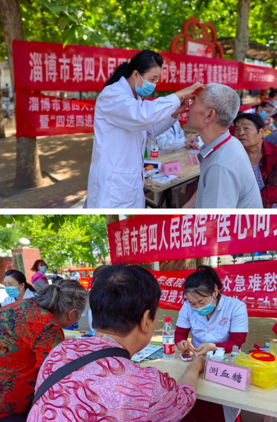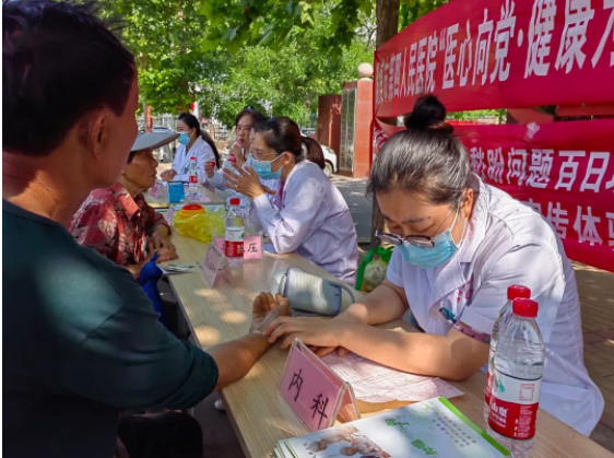 当日恰逢沣水大集,活动现场前来就诊和咨询的群众络绎不绝。来自肿瘤科、中医科、内科、重症医学科、眼科的医护人员认真接待每一位群众,测血糖、量血压,耐心解答各种疑难问题,根据不同病情及需求提供个体化治疗方案,同时针对常见病、多发病进行科普宣教。