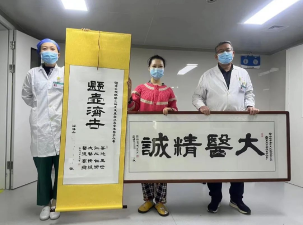 “太感谢你们了,你们医术高超,医德更高尚。”康女士表示,“医院的环境好,医术好,服务好,病自然好得也快。今天送来了两幅书法作品,就是对你们的真实写照!”