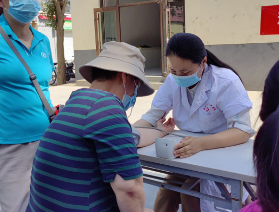 心理科主治医师吕淑萍,为居民量血压,针对有睡眠欠佳、躯体不适、情绪不良等问题的居民,运用心理健康知识给予指导和帮助,引导社区居民更好地认识自己,使其对心理健康有全新的认识。