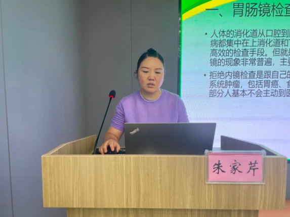 内科三组负责人朱家芹以《临床经验分享——浅谈胃肠镜》为题,详细讲解了胃肠道疾病的病因、病理、诊断和治疗等相关知识,介绍了胃肠镜的基本知识、胃肠镜的重要性,加深了青年医师对胃肠镜检查在胃肠道疾病的诊断、治疗和预防中重要性的认识。