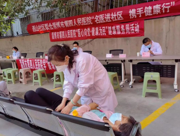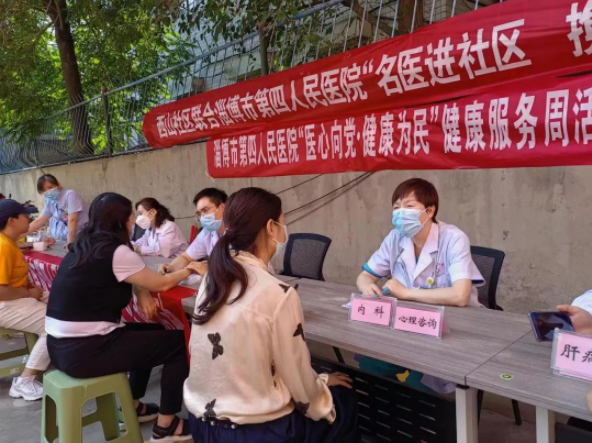 为全面提升全市居民健康素养水平,养成文明健康、绿色环保生活方式,高质量推进健康淄博建设,6月13日下午,淄博市第四人民医院、经开区南定镇西山社区联合开展“名医进社区 携手健康行”活动,组建医护专家团队走进西山社区党群服务中心,为居民进行健康义诊和普及健康知识。