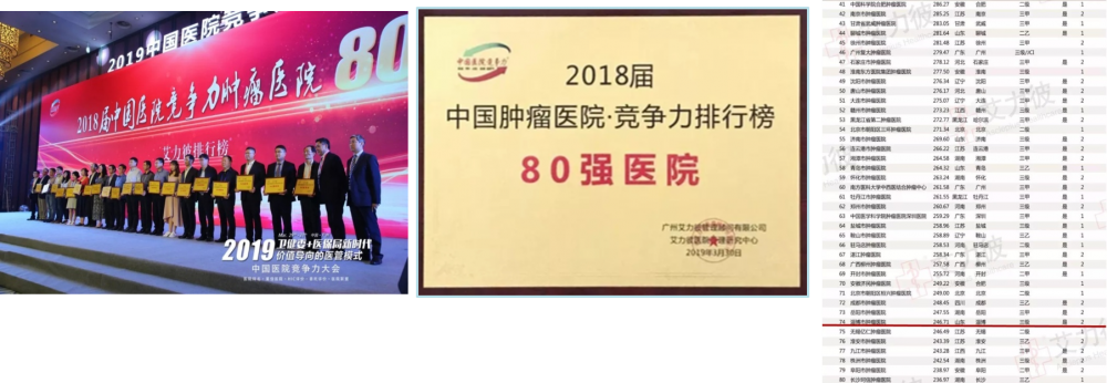 淄博市肿瘤医院、山东省肿瘤医院淄博分院,入选2018届艾力彼中国医院竞争力排行榜全国肿瘤医院80强,位列全国肿瘤医院第74名,地市级肿瘤医院第31名。