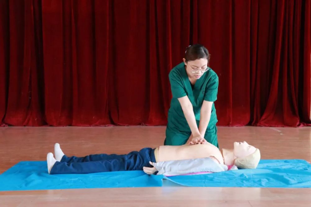 大赛教练做《心肺复苏术》急救技能培训。通过实际演练,详细讲解心肺复苏急救技术细节及注意事项。