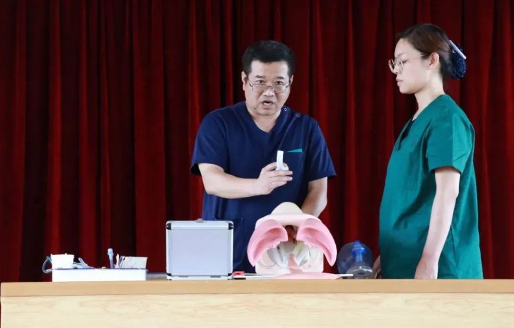 大赛教练做《气管插管术》急救技能培训。现场演示结合技术要点和注意事项的详细讲解,助力参训人员熟练掌握这一关键技能。